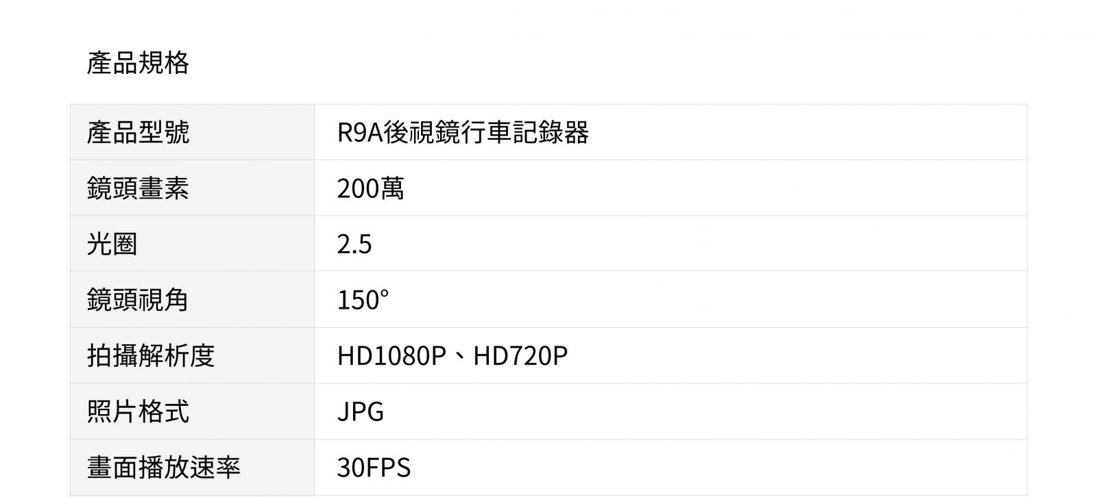 R9A後視鏡行車記錄器